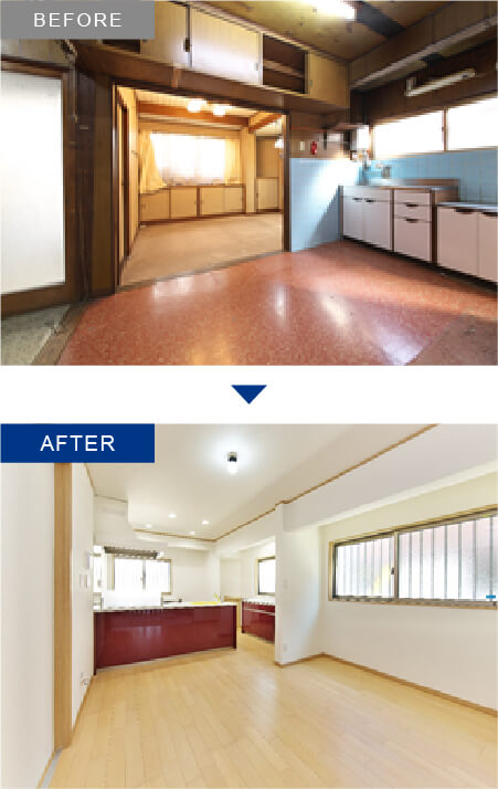 玄関の仕切り引き戸を撤去し明るく/階段勾配をゆるやかに/玄関収納新設/手摺り設置/框を2段に